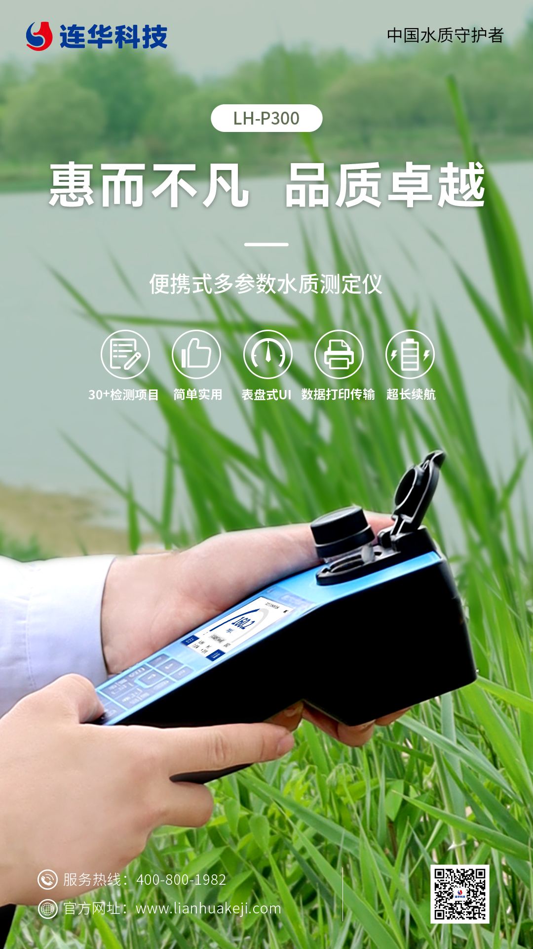 環境保護作為一項基本國策,水質安全成為了社會各界共同關注的焦點之一。無論生活污水,還是工業廢水、自然水體的監測,都離不開精準、高效的水質檢測工具。為此,連華科技推出了LH-P300便攜式多參數水質測定儀,以科技創新的力量,為您的水質檢測工作帶來前所未有的便捷與精準。