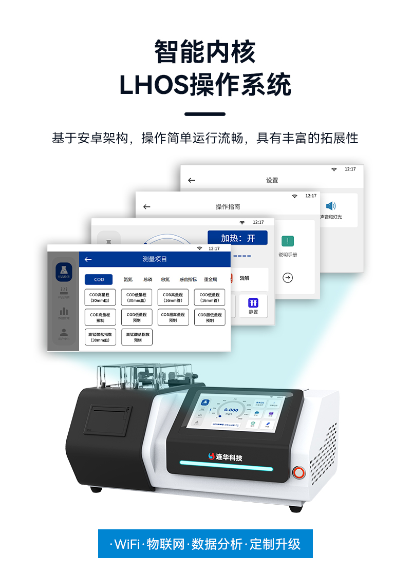 連華科技LH-C500多參數水質測定儀以其極致精準的技術、一體化高效的設計、流暢的智能系統、靈活的定制服務以及全面的檢測能力,成為了水質檢測領域的佼佼者。它不僅提高了水質檢測的效率和準確性,更為水質保護和環境安全提供了強有力的支持。在未來的發展中,連華科技將繼續引領水質檢測技術的潮流,為守護水質安全貢獻更大的力量。