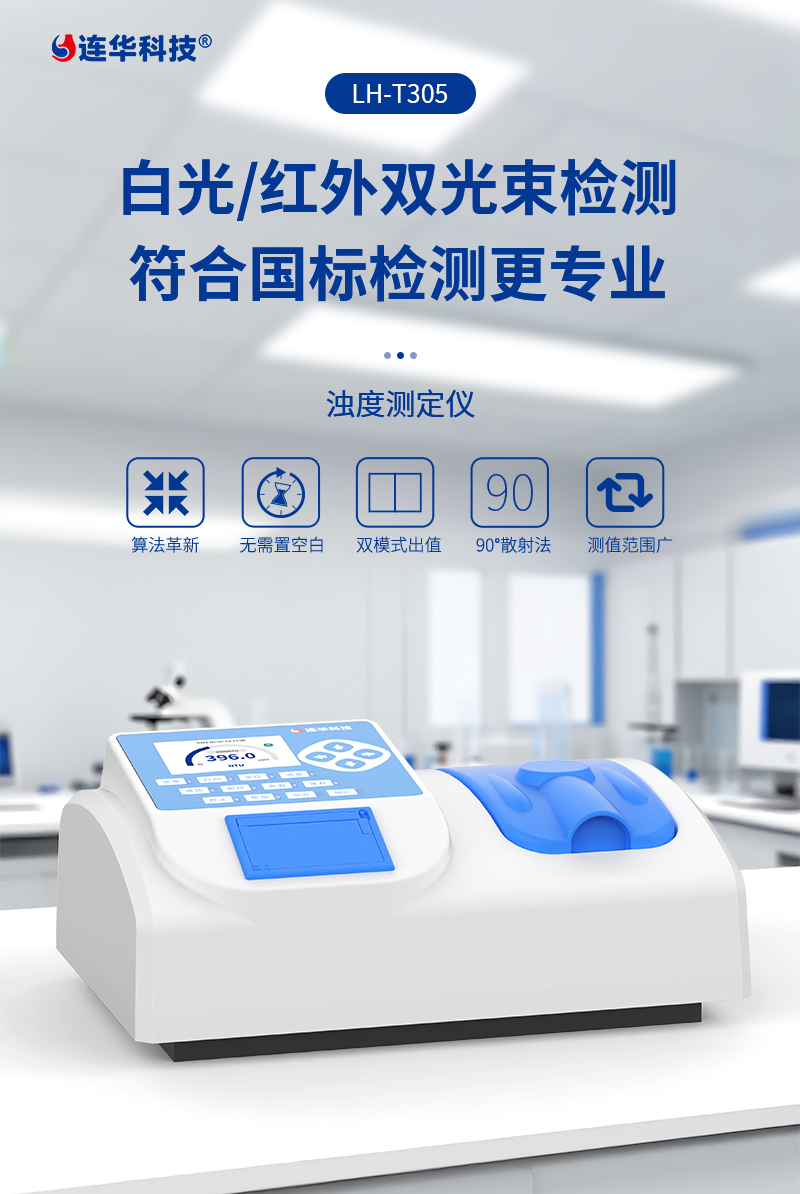 1、符合《HJ 1075-2019 水質 濁度的測定 濁度計法》推薦的雙光束測量;