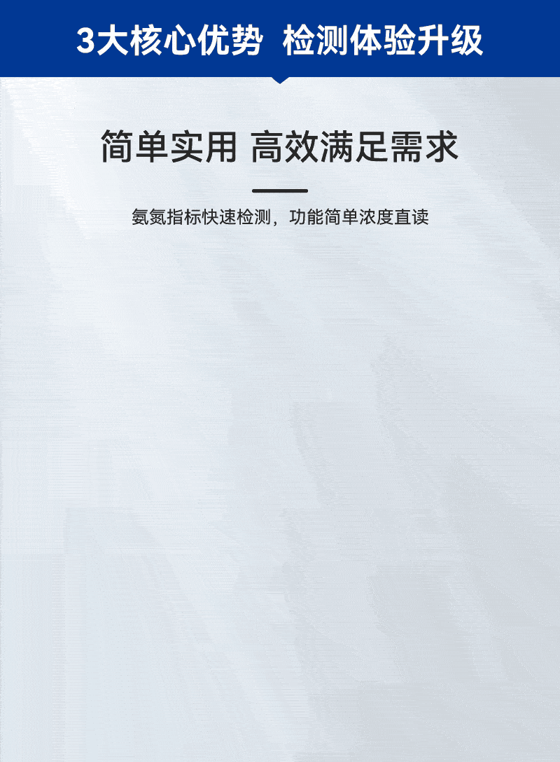 1、簡(jiǎn)單實(shí)用高效滿足需求,氨氮指標(biāo)快速檢測(cè),功能簡(jiǎn)單濃度直讀